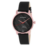 Способ отображения времени - аналоговый, форма циферблата - круглая, что делает их универсальными и подходящими для любого стиля одежды. Цвет корпуса - розовое золото, материал браслета - кожа, цвет браслета - черный. Черный циферблат с отметками времени делает чтение времени легким и удобным.