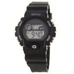 Корпус часов выполнен из прочного черного пластика, который сочетает в себе легкость и долговечность. Серый циферблат с арабскими цифрами легко читается в любых условиях, а яркая подсветка позволит вам увидеть время даже в темноте. Стильный круглый корпус и черный ремешок из надежного пластика придают часам универсальный вид, который идеально подойдет как для занятий спортом, так и для повседневной носки.