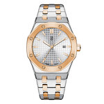 Циферблат в серебристом цвете, дополненный аналоговыми отметками, излучает сдержанную элегантность. Круглая форма корпуса, выполненного из прочной латуни с хромированной отделкой, гармонично дополняет стильный акцент. Нержавеющая сталь в браслете и ремешке обеспечивает не только стиль, но и долговечность, а серебристый цвет подчеркивает вашу индивидуальность и уверенность.