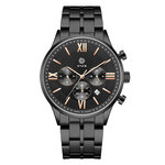 Часы имеют аналоговый способ отображения времени с индикацией в виде римских цифр, что придает им особую утонченность и изысканность. Черный циферблат и корпус создают эффект строгой элегантности, делая их подходящими для любого случая — от деловой встречи до вечернего выхода. К тому же, наличие действующих дополнительных циферблатов и календаря подчеркивает функциональность этих часов.