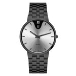 Корпус часов выполнен из прочной латуни, окрашенной в стильный черный цвет, что придаёт аксессуару солидный вид. Серебристый циферблат с ясными отметками обеспечивает легкость восприятия времени, а минеральное стекло защищает его от царапин и повреждений, сохраняя идеальный внешний вид.