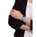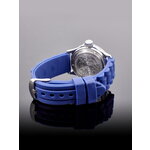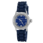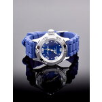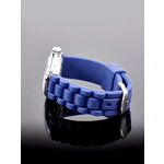 Данная модель обладает аналоговым способом отображения времени, что придаёт ей классический шарм. Циферблат украшен выразительными арабскими цифрами и вставками из страз, создавая эффектный акцент. Яркий синий цвет циферблата гармонично сочетается с хромированным корпусом и синим силиконовым браслетом, который не только удобно сидит на запястье, но и добавляет динамики вашему стилю.