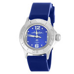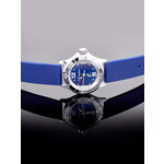 Дизайн модели сочетает в себе яркость и сдержанность: синий силиконовый браслет длиной 185 мм и шириной 18 мм создает комфортное прилегание на запястье. Элементы изящных страз добавляют нотки роскоши, делая часы привлекательными для женщин, стремящихся выделиться из толпы, сохраняя при этом спортивный образ.