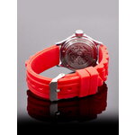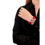 Часы выполнены из высококачественной латуни, а прочный полиуретановый ремешок яркого красного цвета не только привносит яркие акценты, но и обеспечивает максимальный комфорт в ношении. Оптимальная длина ремешка составляет 185 мм, а ширина — 18 мм, что делает эти часы идеальными для любого запястья. Привлекательные арабские цифры на циферблате, украшенные стильными стразами, позволяют легко считывать время даже в условиях недостаточной освещенности, благодаря предусмотренной подсветке.