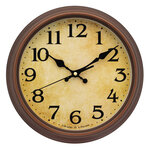 Часы имеют круглу форму и выполнены в уютных коричневых тонах, что делает их отличным акцентом в вашем доме. Бежевая поверхность циферблата с арабскими цифрами обеспечивает легкость восприятия времени, добавляя нотки комфорта и уюта. Скромный, но стильный вид станет прекрасным дополнением к вашему интерьеру.