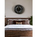 Циферблат также выполнен в черном цвете, что делает часы не только стильным, но и универсальным элементом дизайна. Римские цифры, служащие индикатором времени, подчеркивают классическую эстетику, а плавный ход кварцевого механизма обеспечивает точность и надежность в работе.