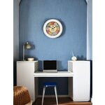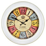 Круглая форма и белый корпус часов гармонично сочетаются с ярким разноцветным циферблатом, на котором четко выделены арабские цифры. Это обеспечивает отличную читабельность времени даже на большом расстоянии. Часы выполнены из дерева, что гарантирует их долговечность и придаёт интерьеру тепло и элегантность.