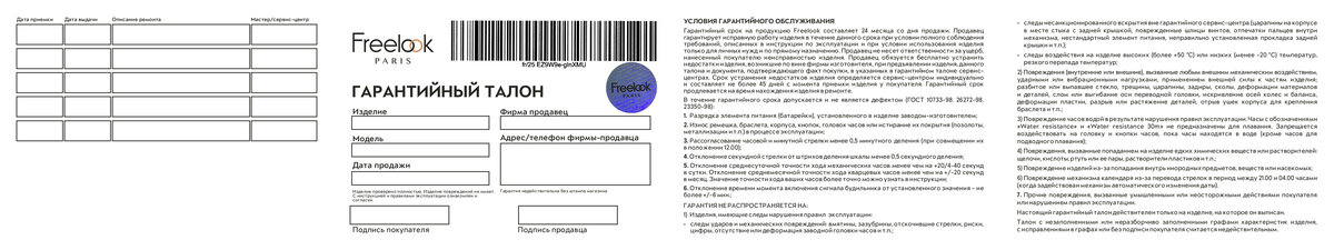 Информируем Вас о том, что наша компания создала гарантийное обслуживание часов Freelook на территории России. Теперь к каждым часам Freelook мы предоставляем фирменный гарантийный талон. Гарантийный ремонт осуществляют авторизованные сервисные центры в 37 городах России.
