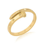 Стильное золотистое кольцо воплощает в себе современные модные тренды. Оно идеально подходит для женщин, желающих подчеркнуть свою индивидуальность и оригинальность. Размер 18 делает его удобным и подходящим для большинства пальцев. Благодаря универсальному дизайну это кольцо можно легко сочетать как с повседневной, так и с вечерней одеждой, придавая вашему образу особый шарм.