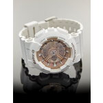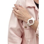 Белый пластиковый корпус и браслет, циферблат в розовом золоте создают нежный и стильный образ, подчеркивающий женскую изящность. Минеральное стекло обеспечивает надежную защиту от царапин и повреждений.