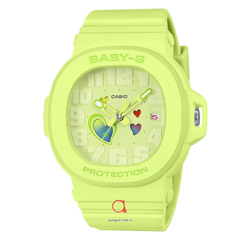 С часами BGA-10-3A вам не нужно беспокоиться о погоде - они влагозащищенные до 10 Bar. Корпус и браслет выполнены из прочного пластика, а минеральное стекло защитит циферблат от царапин.