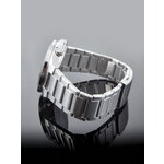 Часы имеют круглую форму корпуса из нержавеющей стали с серебристым цветом, который гармонично сочетается с черным цветом циферблата. Железный браслет также серебристого цвета и украшен действующими дополнительными циферблатами.