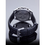 Корпус из нержавеющей стали хромированного цвета придает часам современный и запоминающийся вид, а черный кожаный ремешок обеспечивает максимальный комфорт и прочность. Ширина ремешка в 21 мм и его длина в 215 мм позволяют идеально подстроить часы под запястье, создавая стильный, но в то же время удобный аксессуар.