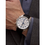 Серебристый циферблат с четкими отметками и действующими дополнительными циферблатами не только легко читается, но и выглядит весьма привлекательно. А встроенный хронограф и календарь открывают новые горизонты функциональности, позволяя всегда быть на шаг впереди!