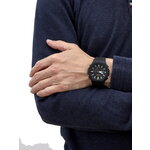 Часы имеют противоударный корпус черного цвета с минеральным стеклом и высококачественным полимерным пластиком. Браслет из полиуретана также черного цвета, дополняя стильный образ. Длина ремешка - 195 мм, ширина - 25 мм.