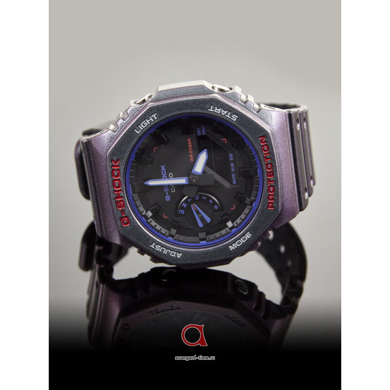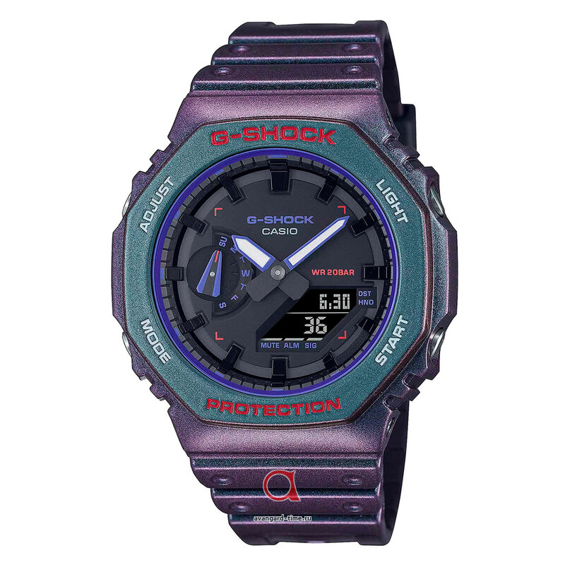 Необычные и стильные наручные часы Casio GA-2100AH-6A станут отличным аксессуаром для любителей спортивного стиля. Эти часы сочетают в себе аналоговый и цифровой способы отображения времени, что делает их удобными и практичными. Корпус в ярком синем цвете и фиолетовый пластиковый ремешок придадут вашему образу стильный акцент.