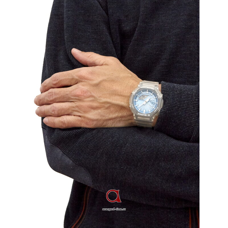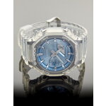 Почувствуйте дух приключений с наручными часами Casio GA-2100BM-7A2! Эти спортивные часы идеально подойдут для активных людей, которые ценят надежность и стиль. Их уникальное комбинированное отображение времени – аналоговое и цифровое – обеспечивает удобство использования в любых условиях. Круглая форма корпуса из прочного прозрачного пластика и стильный голубой циферблат делают модель не только функциональной, но и визуально привлекательной.