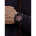 Корпус из прочного полимерного пластика и браслет из высококачественного полиуретана представляют собой сочетание легкости и надежности, позволяя часам удобно сидеть на запястье и выдерживать серьезные нагрузки. Черный цвет корпуса и бордовый циферблат создают впечатляющий контраст, который привлекает внимание, одновременно оставаясь сдержанным и элегантным.