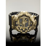 Часы оснащены комплексной системой отображения времени: аналоговый и цифровой дисплеи позволяют легко считывать время в любых условиях. Золотистый корпус из нержавеющей стали, в сочетании с черным полиуретановым ремешком, придает модели элегантный и современный вид. Круглая форма и стильный циферблат с отметками делают эти часы не только практичными, но и стильными.