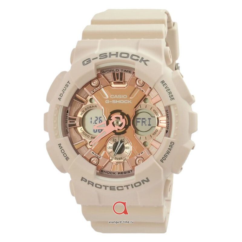 Эти наручные часы GMA-S120MF-4A от Casio - идеальный выбор для активного образа жизни! Этот модель сочетает в себе аналоговый и цифровой способы отображения времени, что делает их удобными и практичными. Стильный спортивный дизайн, надежный противоударный корпус и водонепроницаемость до 20 BAR делают их отличным выбором для занятий спортом или активного отдыха.