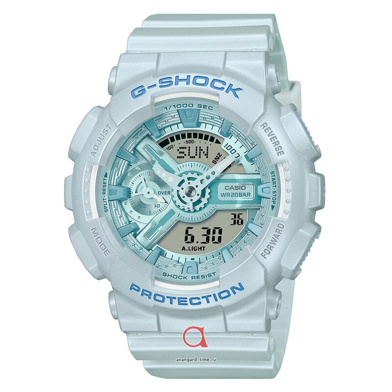 С часами GMA-S110ST-2A никакие непредвиденные ситуации вам не страшны благодаря функции противоударности. А благодаря подсветке вы сможете легко видеть время в темноте. Кроме того, на часах есть будильник, секундомер, календарь, второй часовой пояс и таймер. Их источник энергии - батарейка, что обеспечивает длительный срок службы.