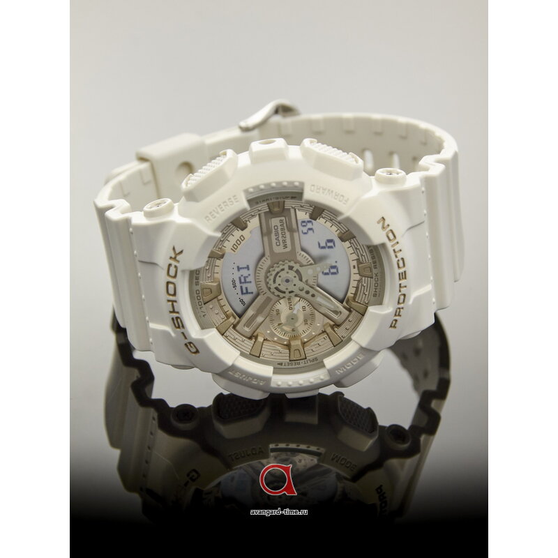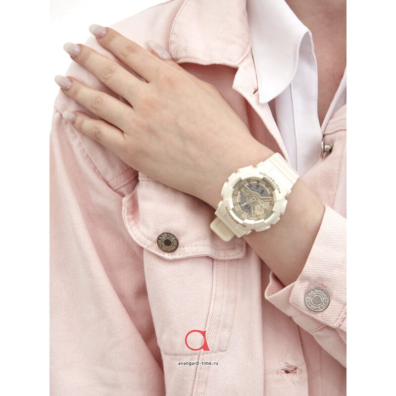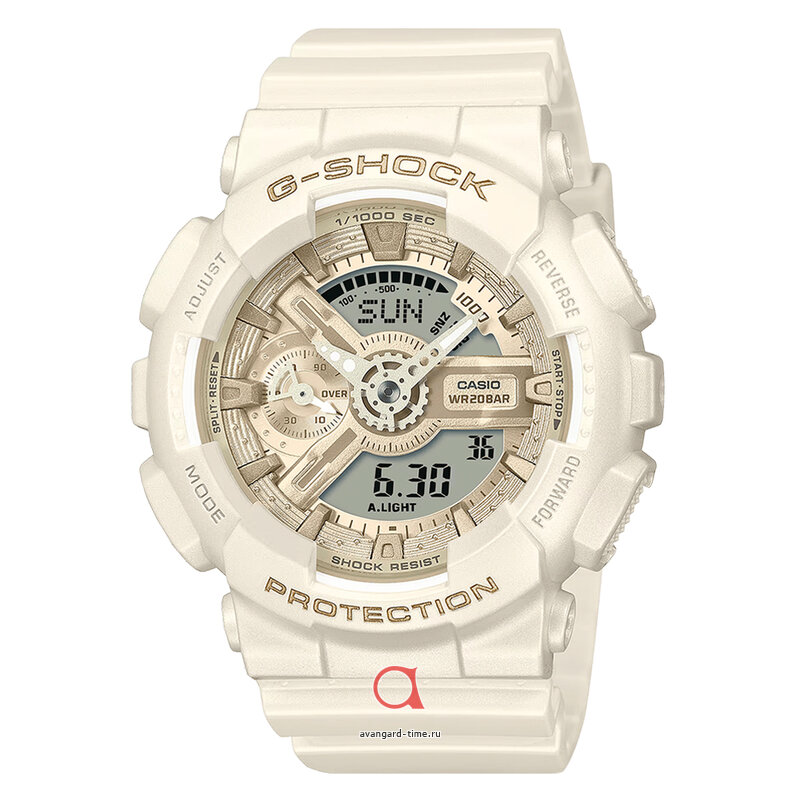 Универсальные часы GMA-S110ST-7A от Casio – идеальное сочетание стиля и функциональности! С такими часами ты не упустишь ни одной важной встречи благодаря аналоговому и цифровому способу отображения времени. Благодаря спортивному дизайну, они станут отличным аксессуаром для активного образа жизни. Ты смело можешь отправляться на тренировку – часы противоударные и имеют класс водонепроницаемости 20 Bar. Подсветка, будильник, календарь, секундомер, второй часовой пояс, таймер – все необходимые функции есть здесь! Они работают от батареек и имеют гарантию на 1 год. Широкий ремешок из пластика подойдет на любой запястье, а бежевый цвет корпуса и браслета с серым циферблатом выглядят стильно и модно. Приобрети эти удобные и надежные часы и будь всегда в центре событий!