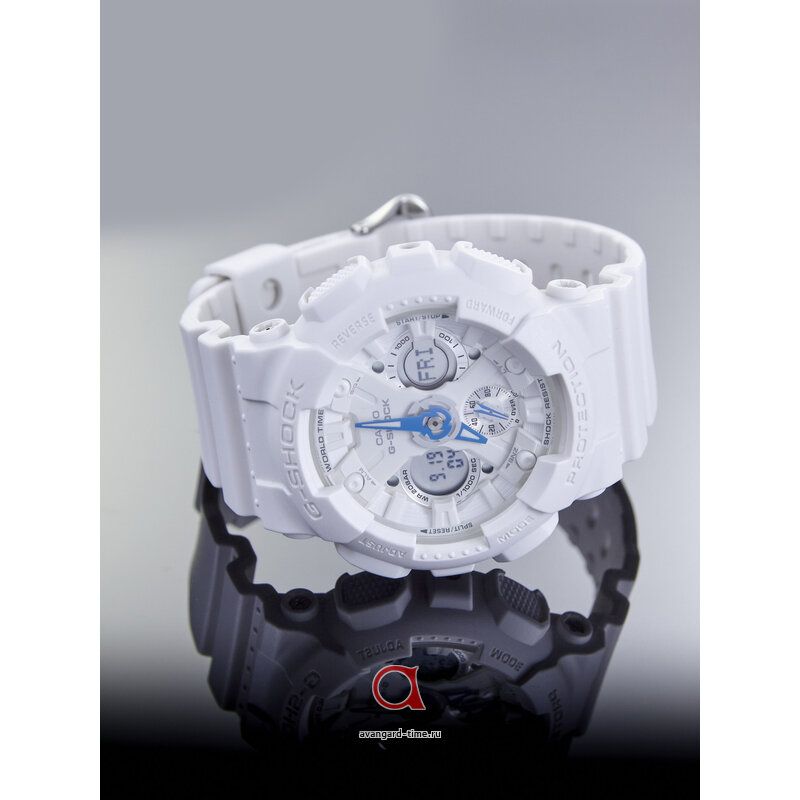 Среди основных преимуществ GMA-S120SA-7A2 мы выделяем превосходную противоударную защиту, что делает их идеальными для занятий спортом и активного отдыха. Класс водонепроницаемости 20 Bar позволяет не беспокоиться о каплях воды – идеальный выбор для плавания и водных видов спорта!