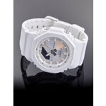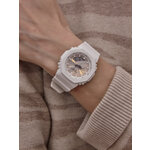 Сочетание аналогового и цифрового отображения времени обеспечивает максимальное удобство и легкость в считывании информации. Циферблат в перламутровом цвете придаёт часам изысканный вид, а белый пластиковый корпус и ремешок создают модный и свежий образ. Длина ремешка составляет 180 мм, а ширина — 22 мм, что обеспечивает надёжную и комфортную посадку на запястье.