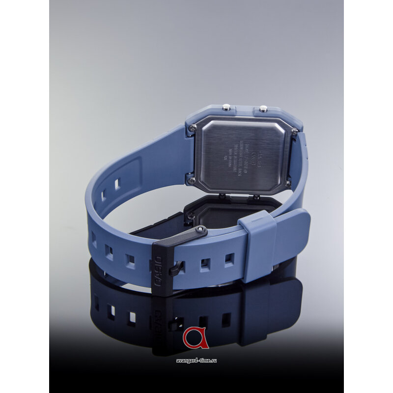 Цифровой дисплей с арабскими цифрами обрамлен квадратным корпусом насыщенного синего цвета, подчеркивающего современный и спортивный дизайн. Серый циферблат легко читается благодаря яркой подсветке, что делает эти часы идеальными даже в темное время суток. Пластиковый браслет в том же цвете, что и корпус, обеспечивает отличное сочетание стиля и комфорта, а длина ремешка в 190 мм и ширина 23 мм гарантируют надежную посадку на запястье.