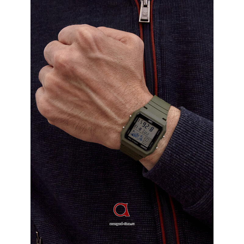 Часы имеют надежный пластиковый корпус зеленого цвета и комфортный пластиковый ремешок той же расцветки, что идеально дополнит ваш спортивный образ. Длина ремешка составляет 190 мм, а ширина — 23 мм, что гарантирует удобную посадку на запястье. Модель обеспечивает защиту от воды до 3 бар, что делает её подходящей для повседневного ношения и легких водных процедур.