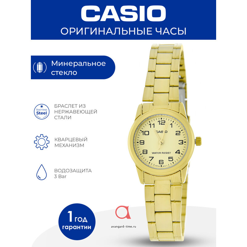 Представляем вам наручные часы Casio LTP-V001G-9B, сочетающие в себе классический стиль и качество материалов. Часы с аналоговым способом отображения времени и кварцевым механизмом идеально подойдут для взрослой аудитории. Золотистый корпус из сплава, золотистый браслет из нержавеющей стали и золотистый циферблат создают элегантный образ. Арабские цифры облегчают чтение времени, а минеральное стекло защищает циферблат. Часы имеют класс защиты от воды 3 Bar, источником питания служит батарейка. Гарантия на изделие составляет 1 год. Casio LTP-V001G-9B - ваш надежный аксессуар для повседневного использования.
