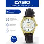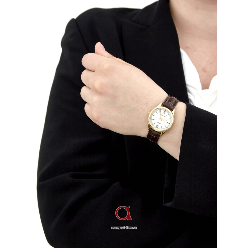 Элегантные наручные часы Casio LTP-V005GL-9B - идеальный выбор для стильных взрослых женщин! Эти классические аналоговые часы в золотистом корпусе с кожаным коричневым ремешком и серебристым циферблатом излучают изысканность и утонченность. Они имеют римские цифры, что добавляет им шарма и уникальности.