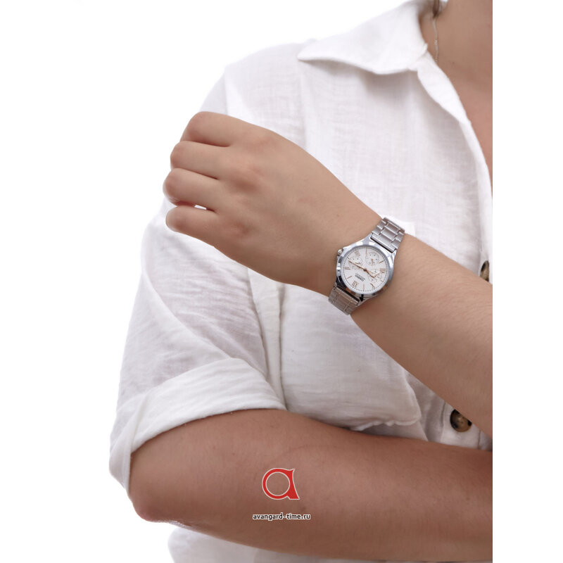 Представляем вам элегантные наручные часы Casio LTP-V300D-7A2! Эти классические часы имеют аналоговый способ отображения времени и стильный круглый корпус хромового цвета. Браслет из нержавеющей стали также выполнен в хромовом цвете, что придает часам особый шарм.