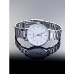 **Дизайн и стиль**: Часы выполнены в классическом круглом корпусе, окрашенном в блестящий хром, который придаёт им особую элегантность. Белый циферблат с комбинированной индикацией обеспечивает легкость восприятия времени и делает часы универсальными для любых случаев — будь то деловая встреча или вечернее мероприятие.