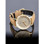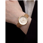 **Дизайн и качество.** Часы имеют изящную круглую форму с золотистым корпусом, который излучает элегантность и изысканность. Бежевый циферблат в сочетании с бежевым кожаным ремешком обеспечивает комфорт и стиль, идеально подходя для женщин, соответствующих самым высоким стандартам моды.