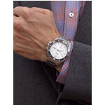 Аналоговый способ отображения времени позволяет легко и быстро считывать информацию с циферблата, который выполнен в серебристом цвете. Часы имеют удобную индикацию времени с отметками и встроенный календарь, что делает их незаменимыми помощниками в любом деле. Длина ремешка составляет 190 мм, а ширина — 21 мм, что обеспечивает комфортное ношение на запястье.