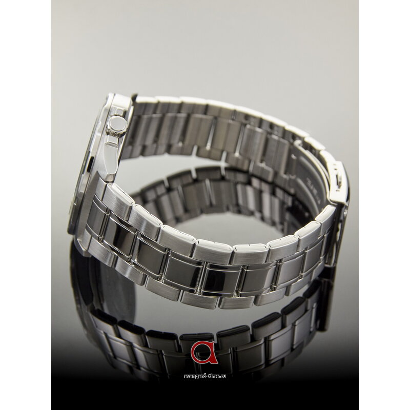 Корпус часов выполнен из нержавеющей стали, а браслет имеет тот же материал и цвет - хром.