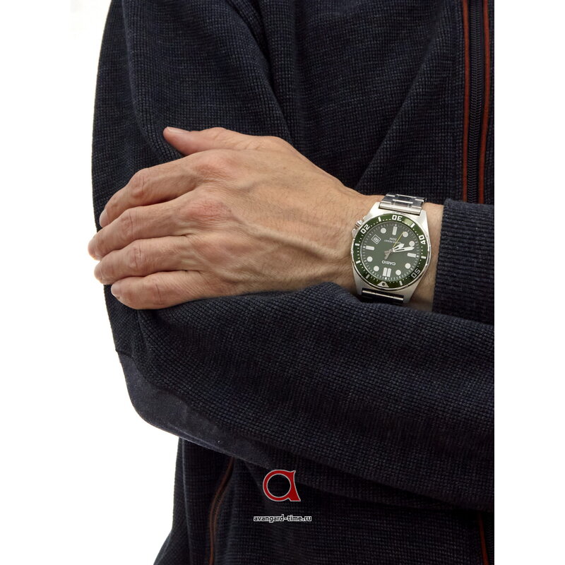 Яркий зеленый циферблат придает часам яркость и индивидуальность.