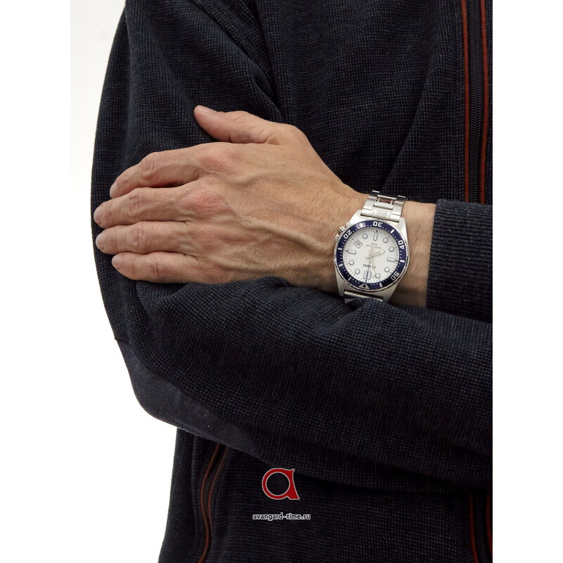 Часы имеют круглую форму с хромированным корпусом из нержавеющей стали. Браслет также выполнен из нержавеющей стали и имеет хромированное покрытие. Цвет циферблата - белый, с яркими отметками для легкого чтения времени.