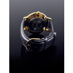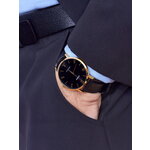 Браслет изготовлен из качественной кожи черного цвета, который обеспечивает комфорт при ношении. Черный циферблат с комбинированным типом индикации идеально гармонирует с остальными элементами часов.