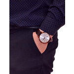 Часы оснащены кварцевым механизмом и питаются от батарейки, обеспечивая точное и надежное показание времени. Календарь на циферблате поможет вам быть в курсе дней недели и даты. Стекло минеральное, что делает его устойчивым к царапинам и повреждениям.