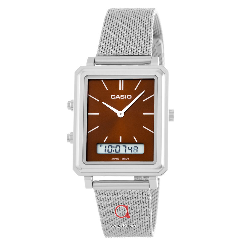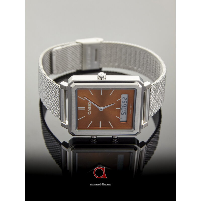 Представляем вам стильные наручные часы Casio MTP-B205M-5E, сочетающие в себе аналоговый и цифровой способы отображения времени. Эти классические часы в прямоугольном корпусе хромового цвета с браслетом из нержавеющей стали привлекут взрослую аудиторию. Оранжевый цвет циферблата добавляет им уникальный акцент.