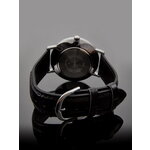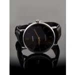 У часов кожаный черный ремешок длиной 195 мм и шириной 20 мм, который обеспечивает комфортную посадку на руке. Красивый и элегантный дизайн данным аксессуаром идеально подходит для взрослой аудитории. Часы работают от батарейки, что обеспечит долгое и надежное использование.