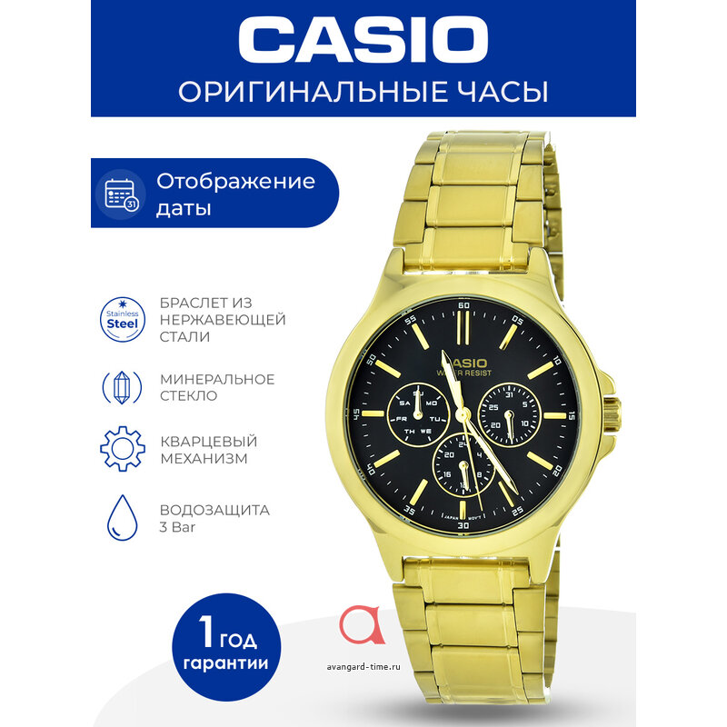 Эти кварцевые часы с минеральным стеклом и водонепроницаемостью 3 Bar не только красивы, но и надежны в использовании. Удобный календарь добавляет практичности в повседневную жизнь. Подходят для взрослой аудитории, тем самым являясь отличным подарком для мужчины. Уверенность в качестве продукции подтверждена гарантией на 1 год. Заказывайте Casio MTP-V300G-1A и наслаждайтесь надежностью и стилем каждый день!