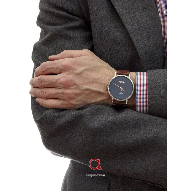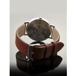 Часы оснащены кожаным коричневым ремешком, шириной 20 мм и длиной 215 мм, что обеспечивает комфортную посадку на запястье. Часы работают от батарейки, гарантия на изделие составляет 1 год.