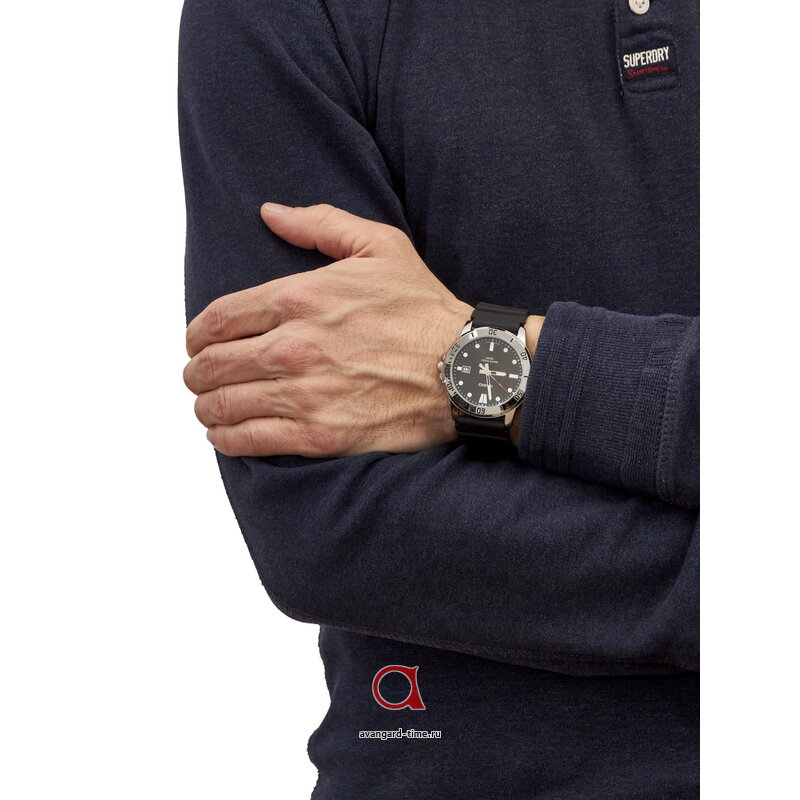 Черный полиуретановый ремешок и циферблат делают эти часы универсальными для любого стиля. Календарь, отметки для удобства чтения времени, а также защита от воды до 5 атмосфер - все это делает их незаменимым аксессуаром для повседневного использования.