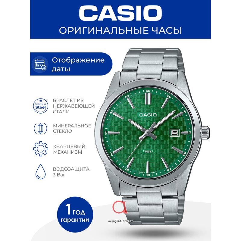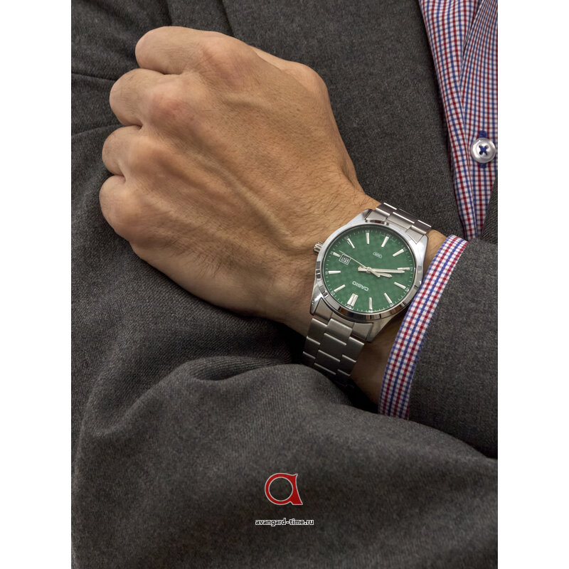 Представляем вам элегантные наручные часы Casio MTP-VD03D-3A1! Идеальное сочетание классического стиля и современных технологий. Эти часы имеют аналоговый способ отображения времени с зеленым циферблатом и хромированным корпусом. Нержавеющая стальная браслет серебристого цвета придает им изысканный вид.