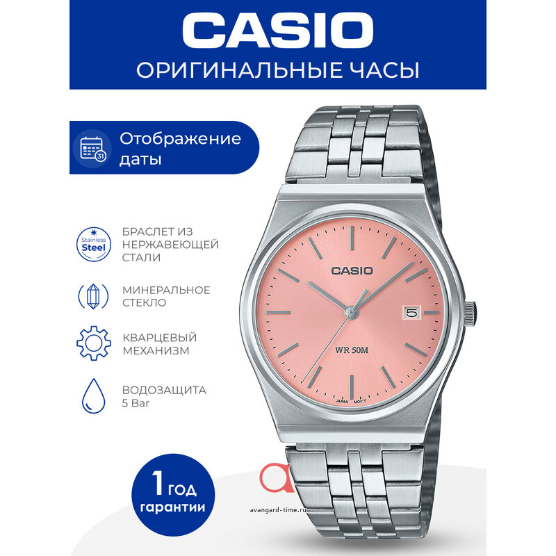 Уникальные наручные часы Casio MTP-B145D-4A станут ярким акцентом вашего стиля! Их классический дизайн и хромированный корпус подчеркнут вашу неповторимую индивидуальность. Нержавеющая сталь браслета и ярко-розовый циферблат придадут вам свежий и оригинальный вид.