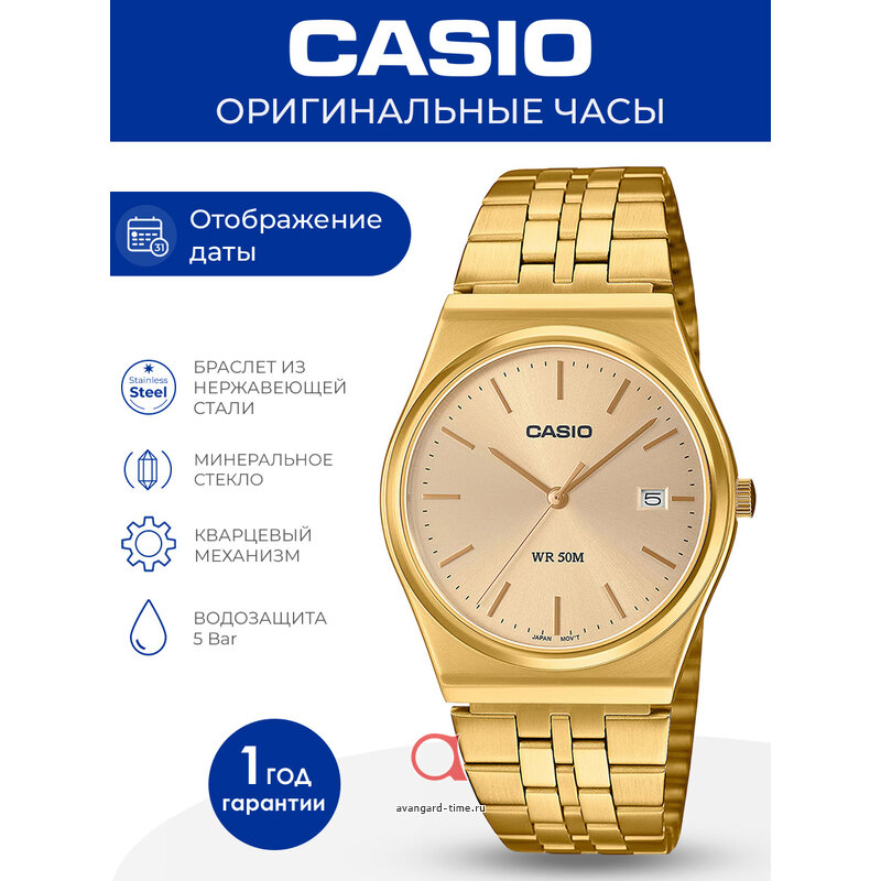 Шикарные наручные женские часы Casio MTP-B145G-9A – это идеальный аксессуар для стильных и уверенных в себе женщин. Классический дизайн в сочетании с золотистым цветом корпуса, браслета и циферблата придают этим часам особый шарм и изысканность. Минеральное стекло обеспечивает надежную защиту циферблата от повреждений, а нержавеющая сталь – долгий срок службы.
