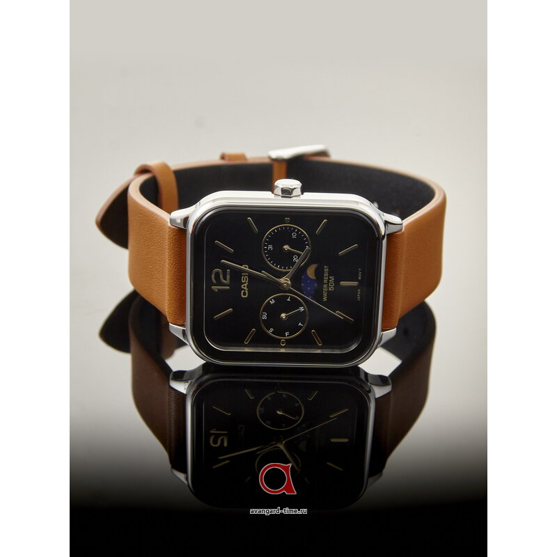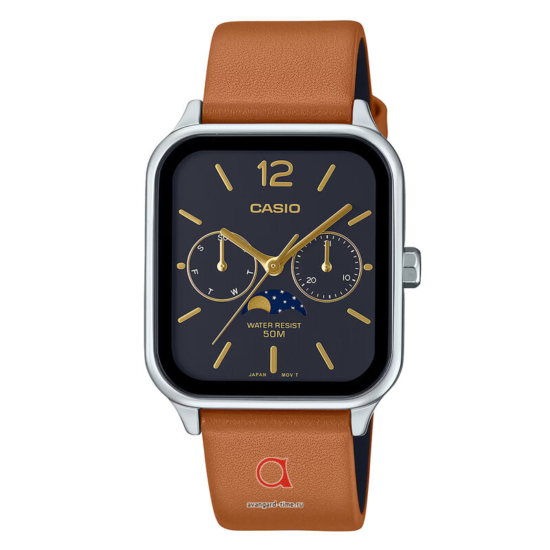 Шикарные часы наручные Casio MTP-M305L-1A - идеальный выбор стильных мужчин! Сочетание классического дизайна и современных технологий делает их востребованными аксессуарами для деловых и повседневных образов. Аналоговый способ отображения времени, прямоугольный корпус цвета хром, кожаный коричневый ремешок, черный циферблат - это всё создает мужественный и изысканный облик. Часы оснащены дополнительными циферблатами, календарем и индикатором фазы луны, что делает их не только стильным аксессуаром, но и функциональным устройством. Кварцевый механизм, нержавеющая сталь корпуса и минеральное стекло гарантируют точность работы и долгий срок службы. Водонепроницаемость до 5 Bar позволяет не беспокоиться за часы во время мытья рук или плавания. Casio - надежный бренд, который радует качеством своей продукции. Почувствуйте себя стильным и уверенным с Casio MTP-M305L-1A!